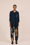 Extremely Hand pleated blouse in ivory color with indigo pleated saree.