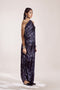 - Pre draped saree with classic round neckline and clean sequin details on the edge
